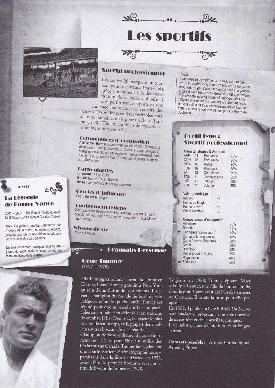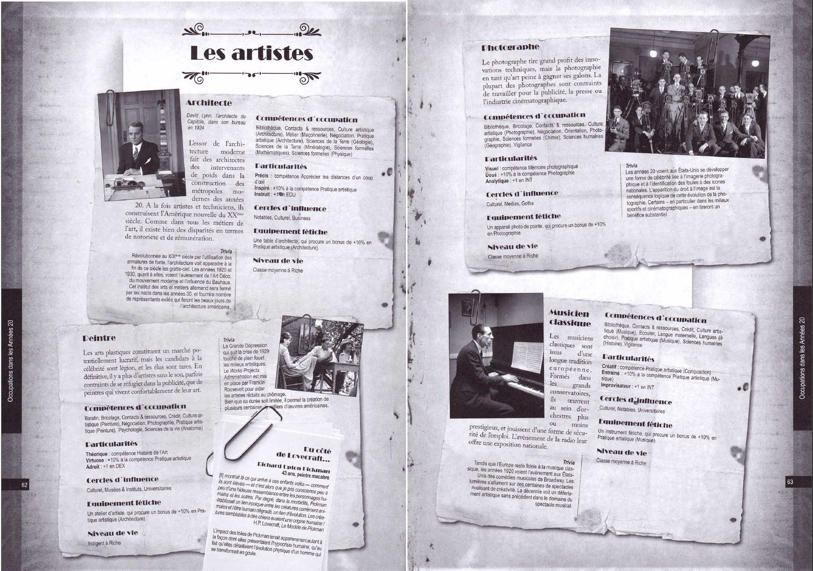 La deuxième partie, Les occupations des Années 20, regroupe cent vingt occupations de l’époque. Certaines d’entre elles, emblématiques pour L’Appel de Cthulhu, font l’objet d’un traitement approfondi au sein de dossiers spéciaux. De grands thèmes sont également abordés, tels que le fonctionnement de la justice, la politique, les milieux criminels, le cinéma ou la religion, pour permettre de mieux appréhender cette époque.