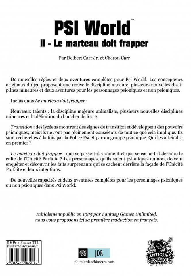 PRÉSENTATION Psi World V - Aventures de Psi World contient deux scénarios pour des nouveaux groupes. Dans l’un d’eux, ils ... Lire La Suite…