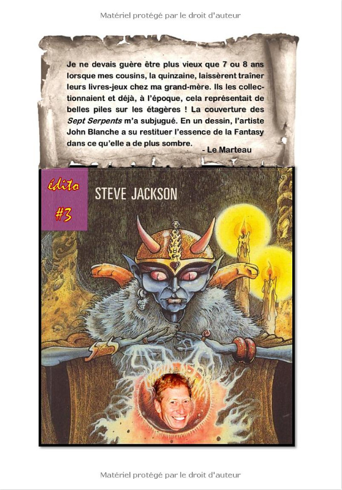Au sommaire, de nombreuses analyses sur les livres-jeux en compagnie du créateur Steve Jackson et de l’artiste John Blanche. Le magazine imprimé est en noir et blanc, le webzine est en couleur.