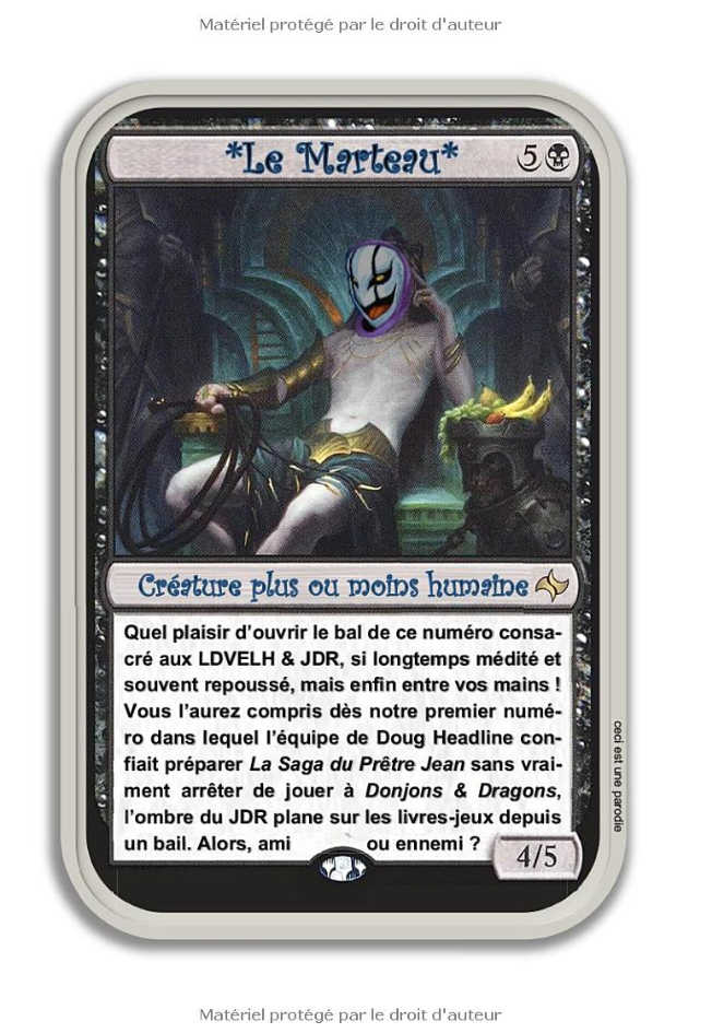Notre huitième numéro est particulier puisqu’il explore les chemins convergents et divergents entre deux médiums : le livre-jeu (type LDVELH) et le jeu de rôle (JDR). Le JDR des Terres de Légende est mis à l’honneur avec un énorme dossier, car il partage son univers avec les LDVELH L’Épée de Légende (tous deux de Dave Morris et Oliver Johnson).