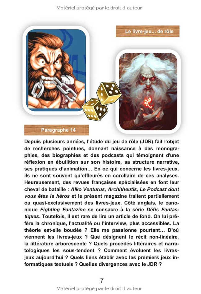 PRÉSENTATION Notre huitième numéro est particulier puisqu’il explore les chemins convergents et divergents entre deux médiums : le livre-jeu (type ... Lire La Suite…
