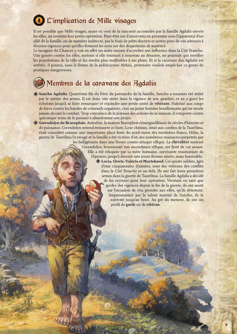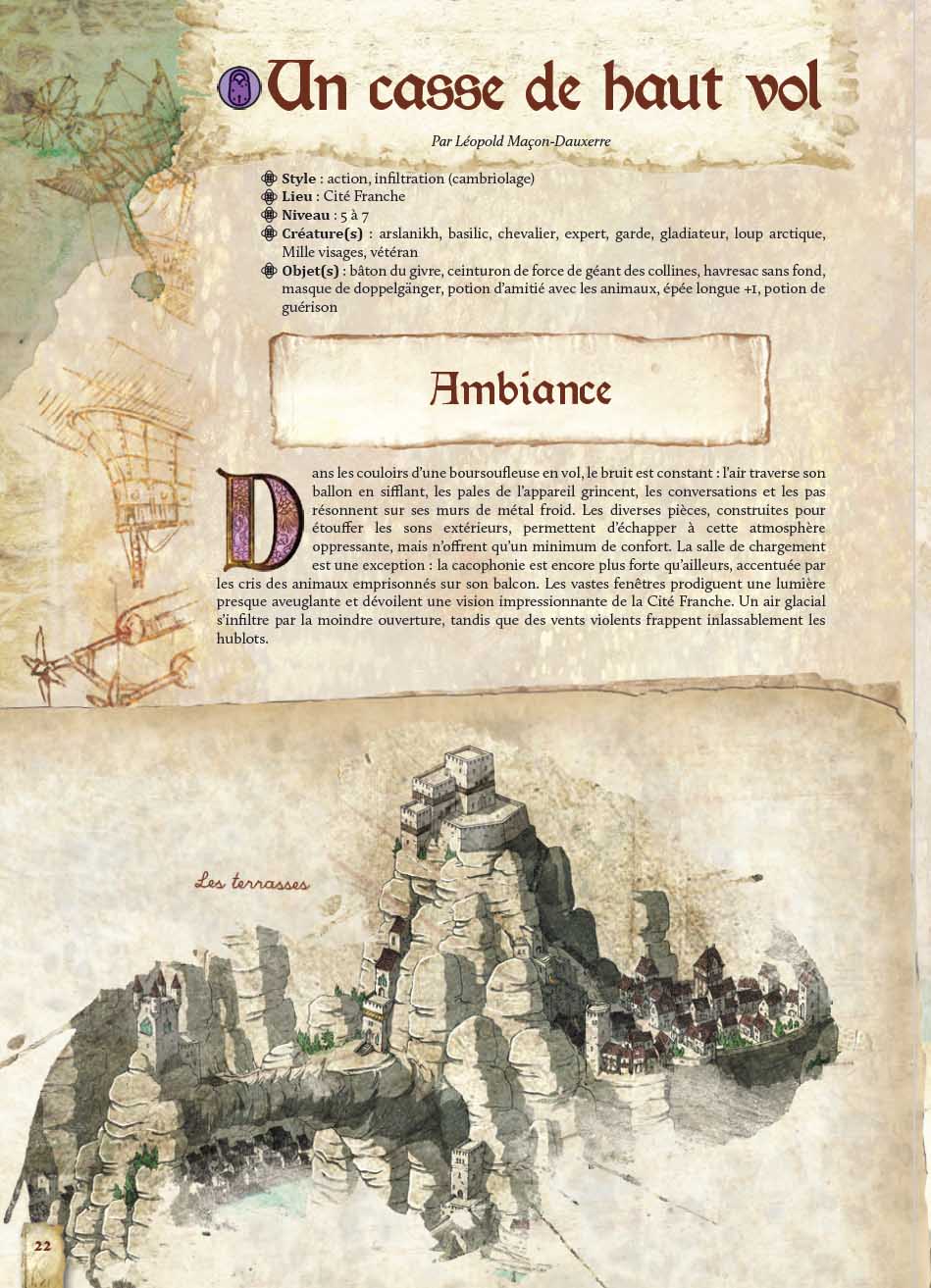 À bord d’une boursoufleuse ou d’un navire voguant vers la Cité Franche, à cheval ou à pied, filant sous le soleil ou se tapissant dans les ombres, les aventuriers se lancent dans des expéditions hautes en couleur, mêlant larcin, escorte, enquête, embuscade et sauvetage.