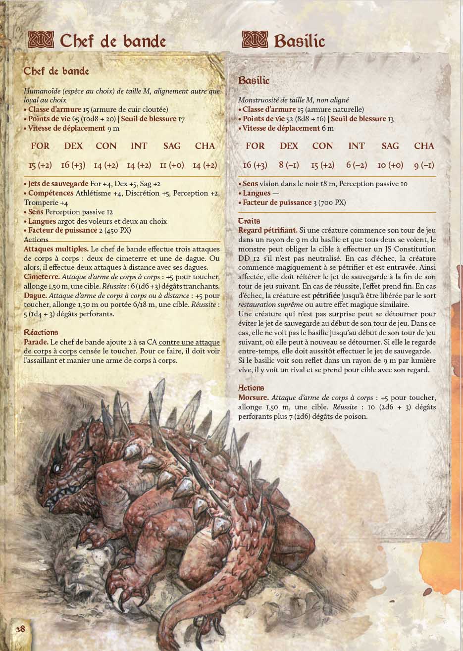 créatures, règles optionnelles et objets magiques utilisés sont décrits en annexes.