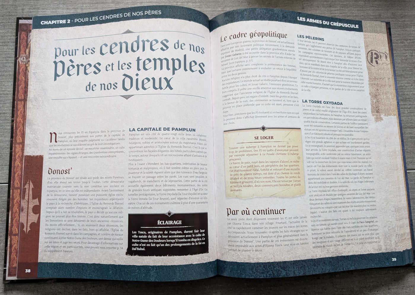 • la description d’un pays lointain constituant un nouveau terrain de jeu venant enrichir la gamme et servant d’écrin à une partie de la campagne.