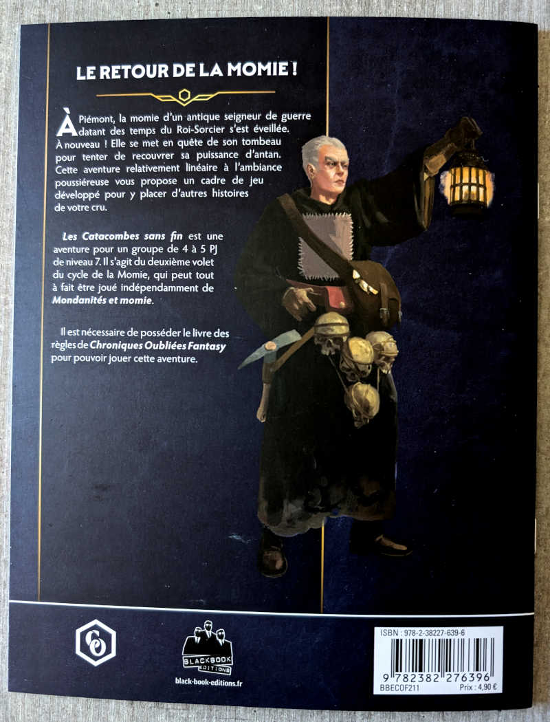 Les Catacombes sans fin est une aventure pour un groupe de 4 à 5 PJ de niveau 7. Il s’agit du second épisode du Cycle de la Momie (avec Mondanités et Momies) . Chaque épisode peut toutefois être joué indépendamment.