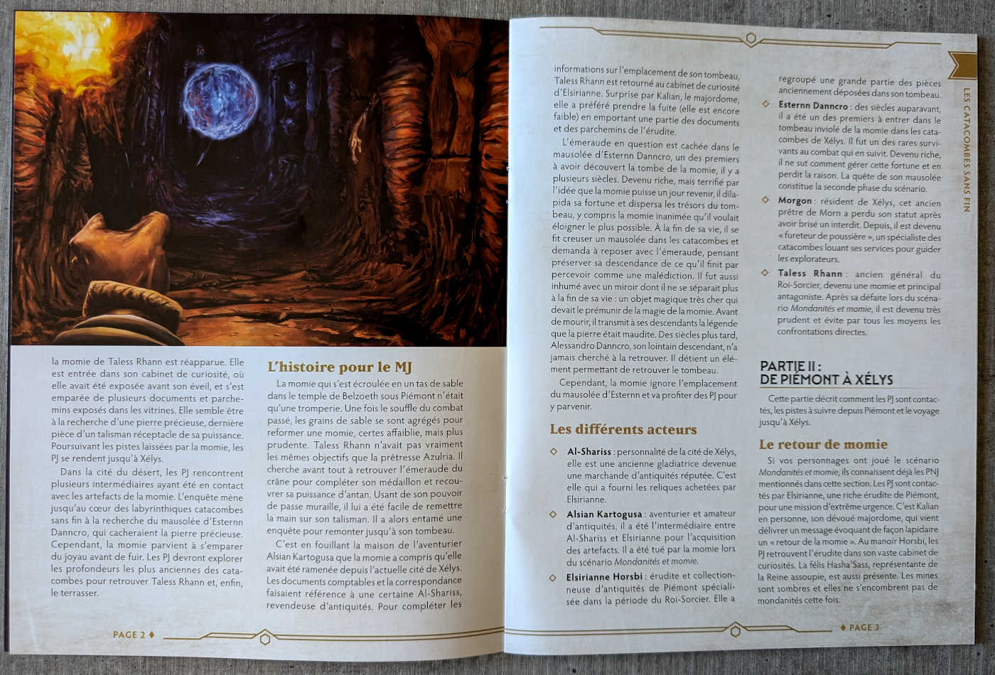 Cette aventure qui sent bon la poussière de tombeau et les longs couloirs menaçants vous propose un cadre de jeu développé pour y placer d’autres histoires de votre cru.