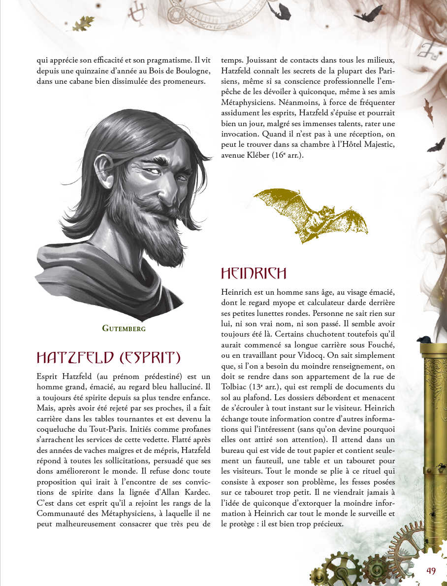 Outre une présentation complète du 3D System, de la création de personnage et des pouvoirs dont disposent les Héritiers, cet ouvrage décrit le premier cadre du jeu, Paris en 1900, ainsi que sa face cachée, la société des fées. Enfin, la dernière section trace les grandes lignes de l’histoire féérique, de son organisation monarchique et des factions qui intriguent en secret. Elle se conclut par un grand scénario d’introduction à l’univers des Héritiers.