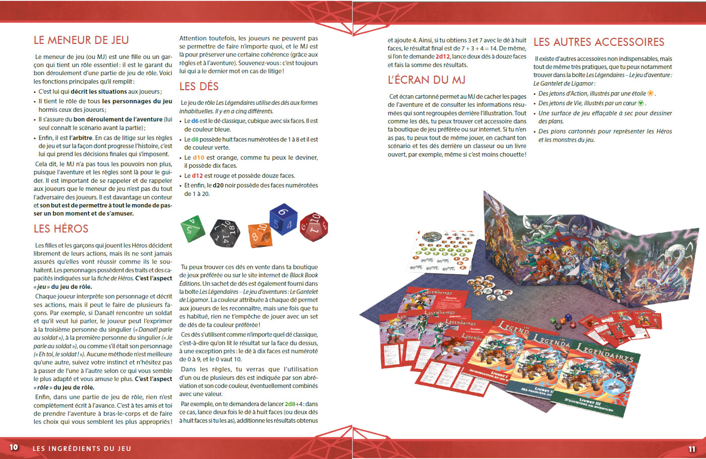 Avec Les Légendaires, le jeu de rôle, tes amis et toi allez pouvoir vivre d’innombrables aventures en incarnant votre propre groupe de Héros, à l’image des Légendaires ou des Fabuleux. Les règles du jeu contenues dans ce livre permettent de créer des Héros originaux, et expliquent bien entendu comment se déroule une partie de jeu de rôle.