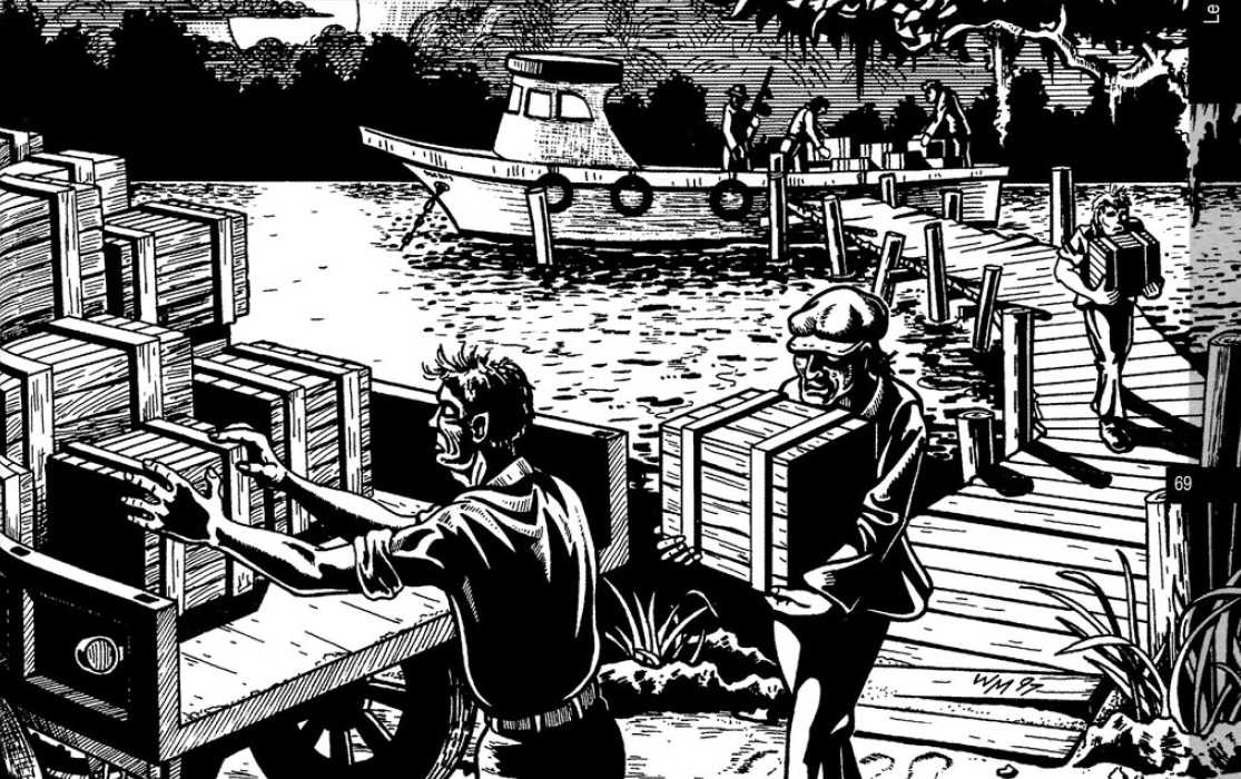Une fois l’an, son carnaval célèbre les morts. Mais toute l’année, sorcières mambos et guérisseurs bokors rendent hommage et servent de légendaires incarnations du mythe: Papa Legba ou Baron Samedi. Ici, le Mythe emprunte le trait des hommes pour mieux leur parler, ou les duper. Des sous-sols de la ville, où courent d’innombrables galeries à demi–noyées, jusqu’au plus profond des marais, où détranges tumulus indiens émergent des eaux mortes, des sociétés secrètes ou de nombreux adeptes tentent d’allier la religion des hommes à celles de divinités impies.