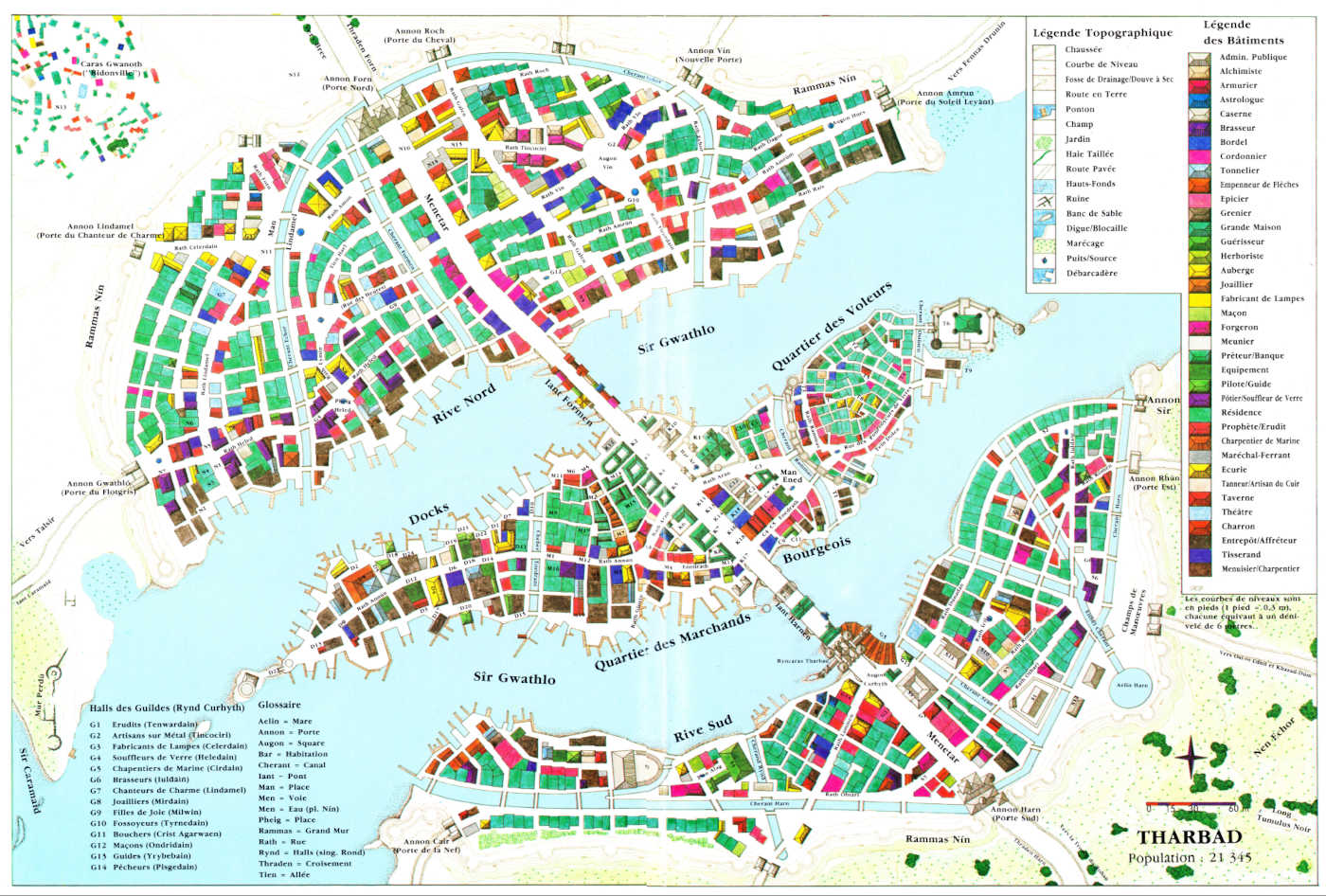 - UNE DOUBLE PAGE EN COULEURS: apprenez à vous retrouver dans cette cité portuaire à cheval sur la rivière Flotgris.