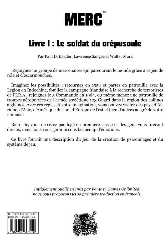 Publié en 1981 par le légendaire studio de jeux de rôles Fantasy Games Unlimited, MERC vous est présenté en français par Le plumier des chimères, dans sa collection Antiques RPG pour la première fois !