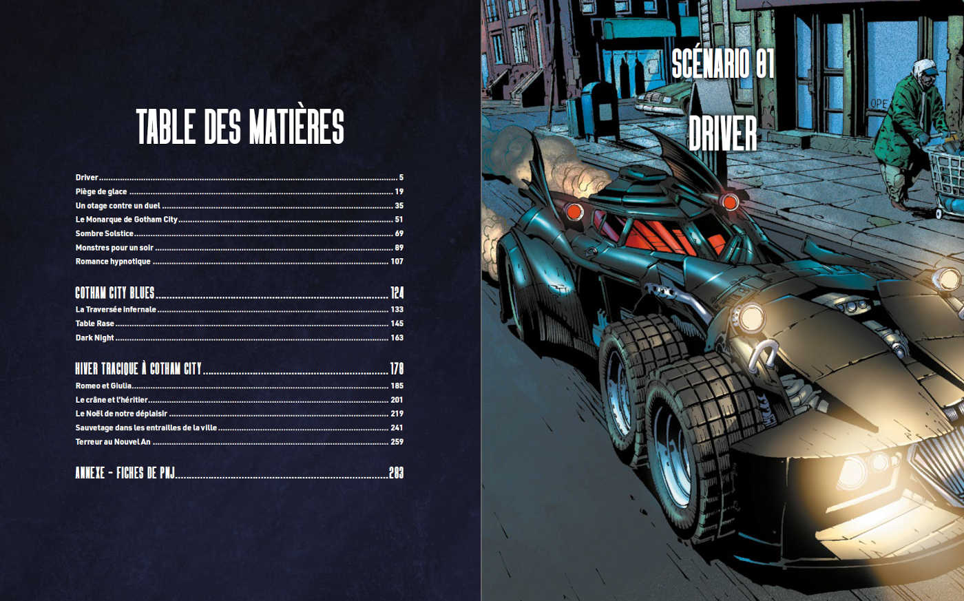À travers ces pages, découvrez un ensemble de 18 scénarios intrigants, accompagnés de leurs personnages principaux et de leurs décors. Chaque scénario est évalué en termes d’Action, d’Enquête et d’Ambiance, offrant ainsi la possibilité de choisir entre une session de jeu pleine d’action ou davantage axée sur l’enquête.