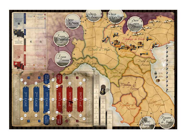 Les jeux de la série L’Or et L’Acier simulent à l’échelle stratégico-opérationnelle les campagnes de la fin du XVème siècle et du début du XVIème siècle, avec une résolution tactique des batailles et des sièges. Un pion de combattants représente respectivement 1500 à 2000 piétons et 750 à 1000 cavaliers au recto et la moitié au verso. Un pion d’artillerie représente une centaine de canons – tous types et calibres confondus.