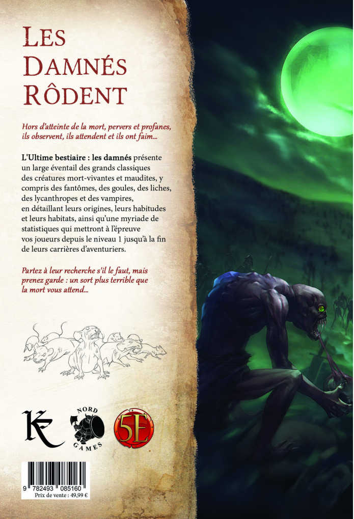 Les morts-vivants et les maudits, comme les loups-garous, font partie des monstres les plus courants de l’univers médiéval fantastique. Cependant, vos joueurs rencontrent souvent sur les mêmes monstres à affronter (squelettes, zombies, liches, vampires…) L’Ultime bestiaire permet d’élargir ces possibilités en prenant chacun des 15 types des morts-vivants (et de damnés) pour en faire au total 170 variations.