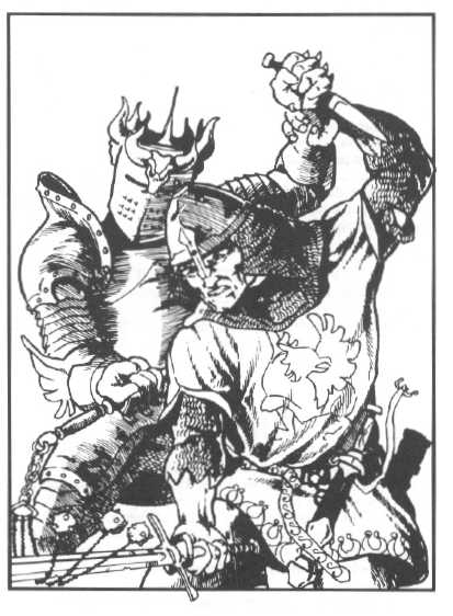 • Un prodigieux système de combat médiéval de Mêlée ou par Projectile; une table de Maladresse, une table de Manœuvres, des tables individuelles d’attaques pour 30 armes et la description de plusieurs dizaines d’autres.