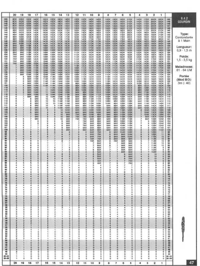 • 10 tables de Coup Critique: Taille, Perforation, Contusion, Saisie, Déséquilibre, Tous Petits Animaux, Grandes Créatures, Très Grandes Créatures et 2 d’Arts Martiaux.