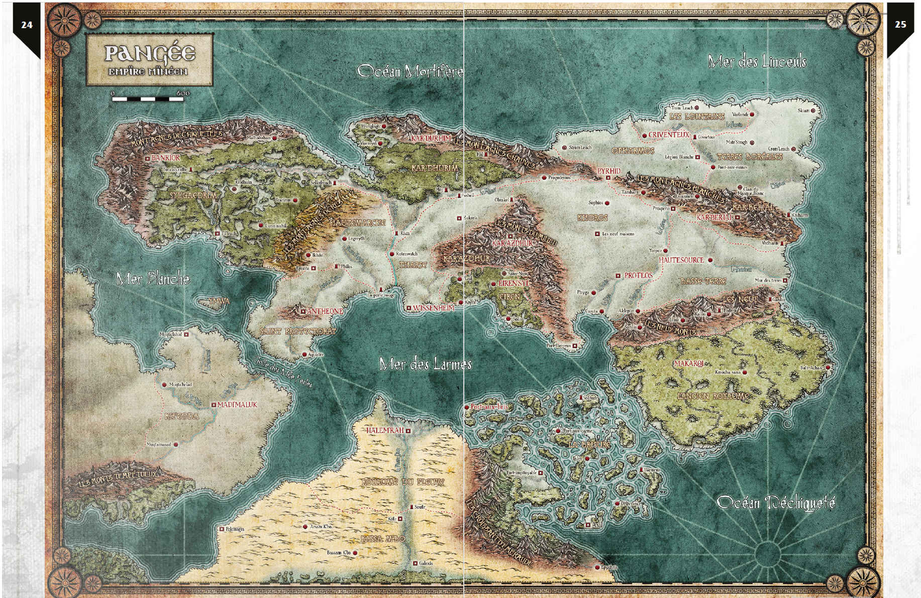 Bienvenue dans Pangée ! Depuis 2 000 ans, l’Empire minéen règne sans partage sur la partie nord d’un ancien supercontinent désormais brisé. Ce territoire, administré par une bureaucratie puissante et riche de traditions anciennes, est tenu d’une main de fer par un empereur-enfant, héritier des savoirs et des connaissances de ses prédécesseurs. Elfes, nains, gnomes, halfelins et bien d’autres peuples encore vivent dans une harmonie qui menace pourtant de se briser à tout moment.