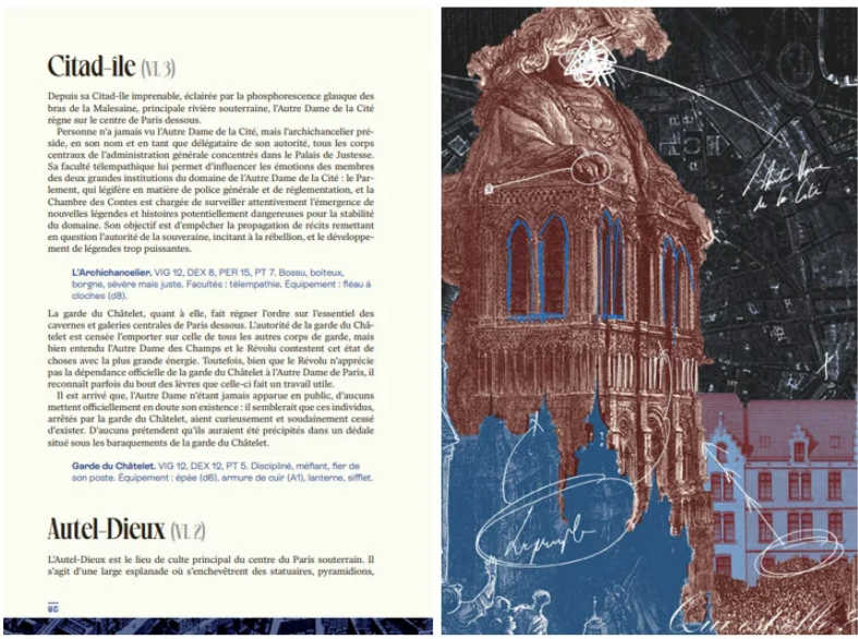 Paris Dessous est un jeu de rôle de découvertes étranges et fantastiques aux règles basées sur Into the Odd et à l’ambiance inspirée par le Neverwhere de Neil Gaiman.