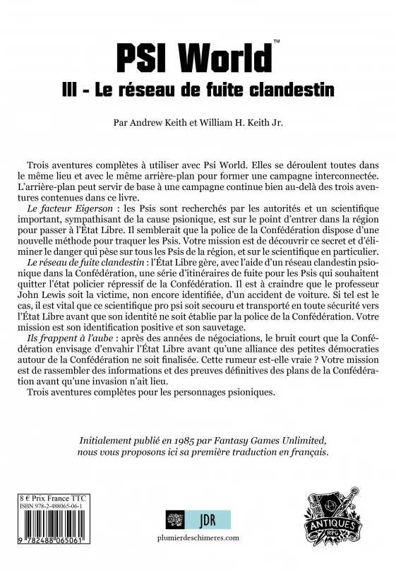 Psi World III – Réseau de Fuite Clandestin : trois aventures complètes à utiliser avec Psi World.