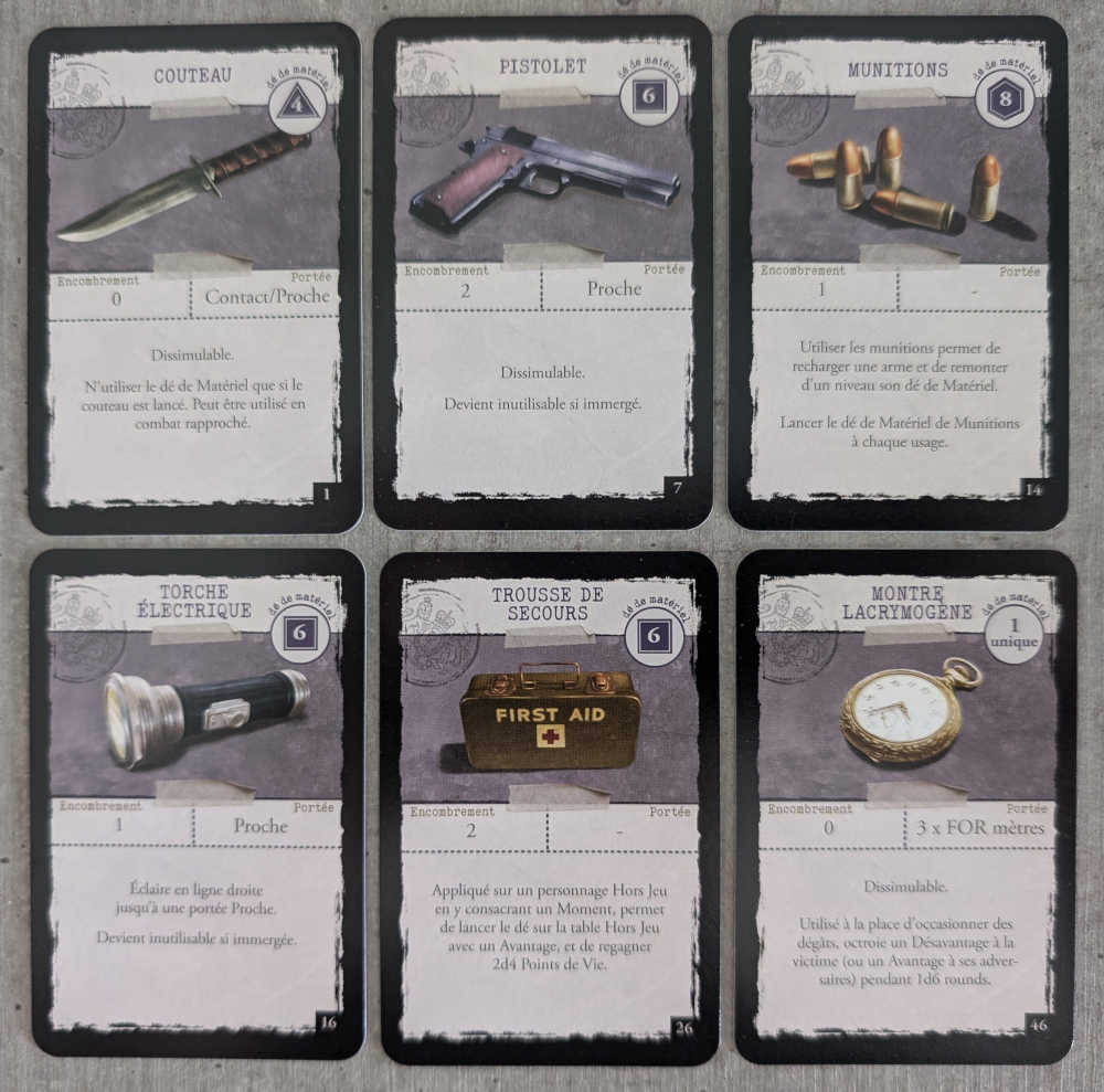 Le paquet de cartes Matériel de mission est spécifique à Section 13. Il contient tout l’équipement disponible durant la campagne. Certaines cartes sont en plusieurs exemplaires, selon le nombre d’objets disponibles à l’Agence.