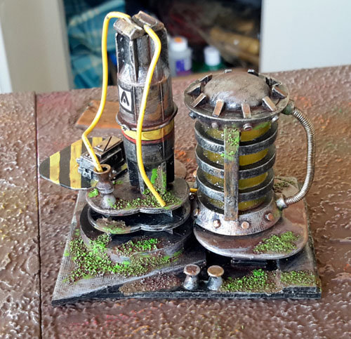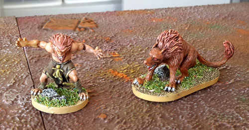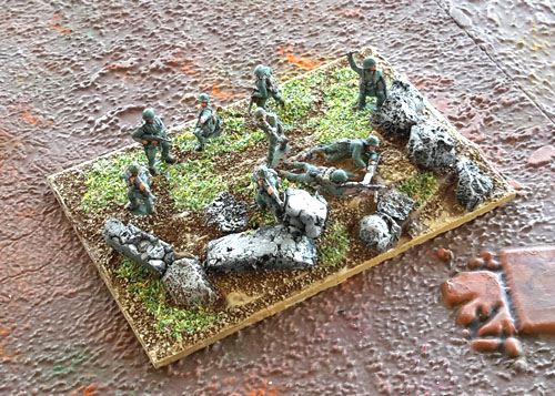 Sortie d’atelier de ce samedi, en vrac; deux loups-garous 28mm plastic prévus pour Frostgrave, le magicien de Dungeon Saga, en version Heroic (figurines metal 28mm), une plaquette d’allemand Normandie 44 pour Command & Colors (Plastic Soldiers Company 15mm): WWII, deux décors pour EDEN; un réacteur abandonné et des roches..