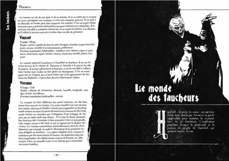Jouez un faucheur ou une faucheuse, qui vit en Hartdörf, un royaume médiéval à la croisée des âges, entre une nouvelle ère marquée par l’expansion de la religion du Krist-Lion et les temps anciens où dominait Thanatos, seigneur du cycle de la vie et de la mort. Thanatos lui a envoyé un esprit, un animalia capable de prendre la forme d’un animal et d’un objet… Une bénédiction qui a fait naître un héros luttant contre les morts-vivants qui hantent Hartdörf et leurs maîtres obscurs cachés dans le monde astral. Et une malédiction qui l’a relégué au rang de paria, chargé d’éliminer ceux que Thanatos choisit de rappeler à lui pour des raisons impénétrables…