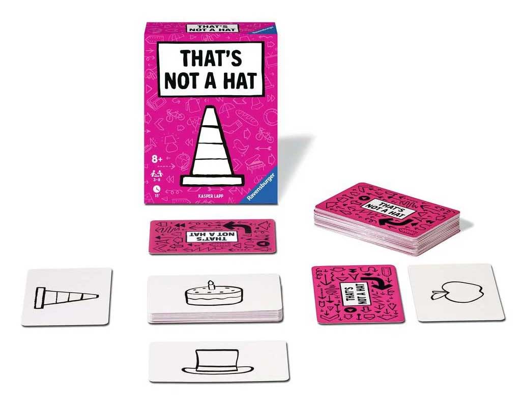 That’s not a Hat est un jeu familial qui fera rire toutes les générations de la famille. Mémorisez les cadeaux en jeu et offrez-les vous… Mais attention vos voisins peuvent refuser votre cadeau et vous le renvoyer. Si vous vous ne souvenez plus du cadeau que vous offrez, bluffez bien !