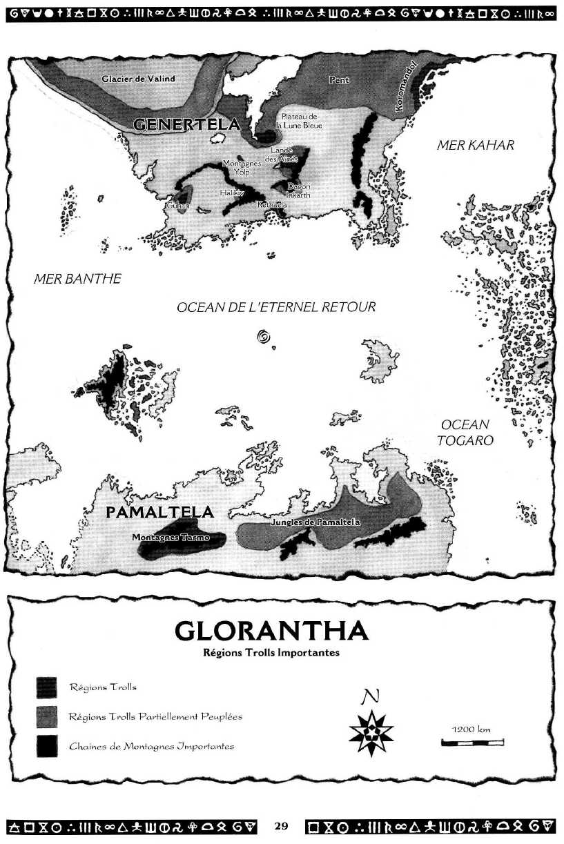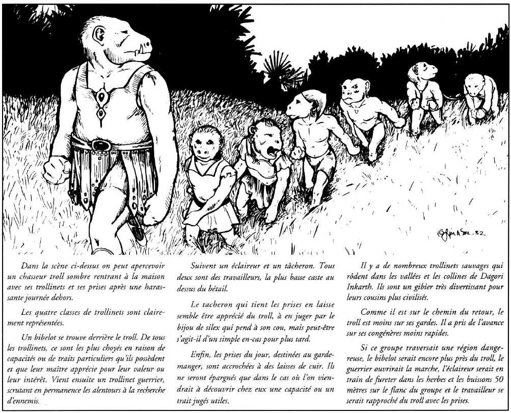 Trolls est une vaste encyclopédie regroupant tout ce que les humains savent des trolls et de leur culture. Tous les aspects des Uz sont examinés, de leurs pratiques militaires à leur redoutable tube digestif en passant par leurs divinités les plus obscures. Vous saurez tout sur leur glorieuse histoire et les épreuves qu’il ont dû traverser pour être enfin reconnus comme l’une des plus grandes races de Glorantha. Après la lecture de ce supplément, vous ne pourrez plus considérer les trolls comme de simples monstres mais bien des êtres complexes que des maîtres et des joueurs imaginatifs pourront interpréter de façon crédible.