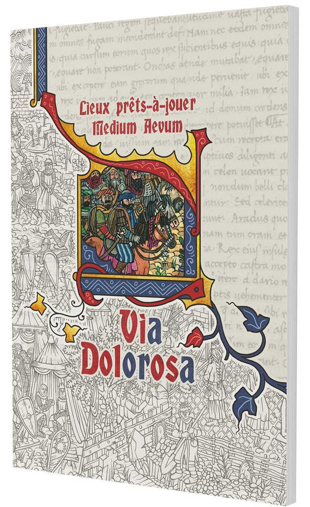 Via Dolorosa décrit des lieux d’aventures situés sur les itinéraires empruntés par les pèlerins se rendant en Terre sainte. Chacun s’accompagne de plan et d’illustrations ainsi que de son lot d’intrigues et de personnages. Tout au long du supplément, de courtes nouvelles, Les chroniques de Bertil Lepilleur, composent un récit qui crée un fil conducteur entre les sites et illustre une façon de les utiliser lors d’une campagne de Medium Aevum.