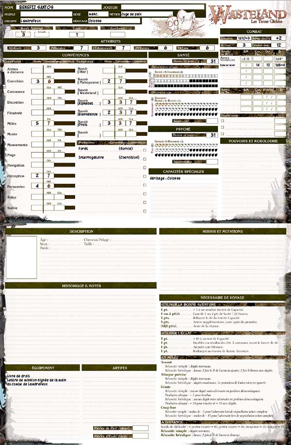 Si on prend en compte que Wasteland est le premier jeu d’un éditeur et de ses auteurs, c’est vraiment un excellent jeu. La seule chose que j’ai à reprocher c’est le placement des illustrations colorées. Les règles sont bonnes, la création de personnage est simple, le potentiel de l’univers et des aventures est énorme, la compatibilité avec Hawkmoon très forte, les scénarios bons. Je ne peux que recommander.