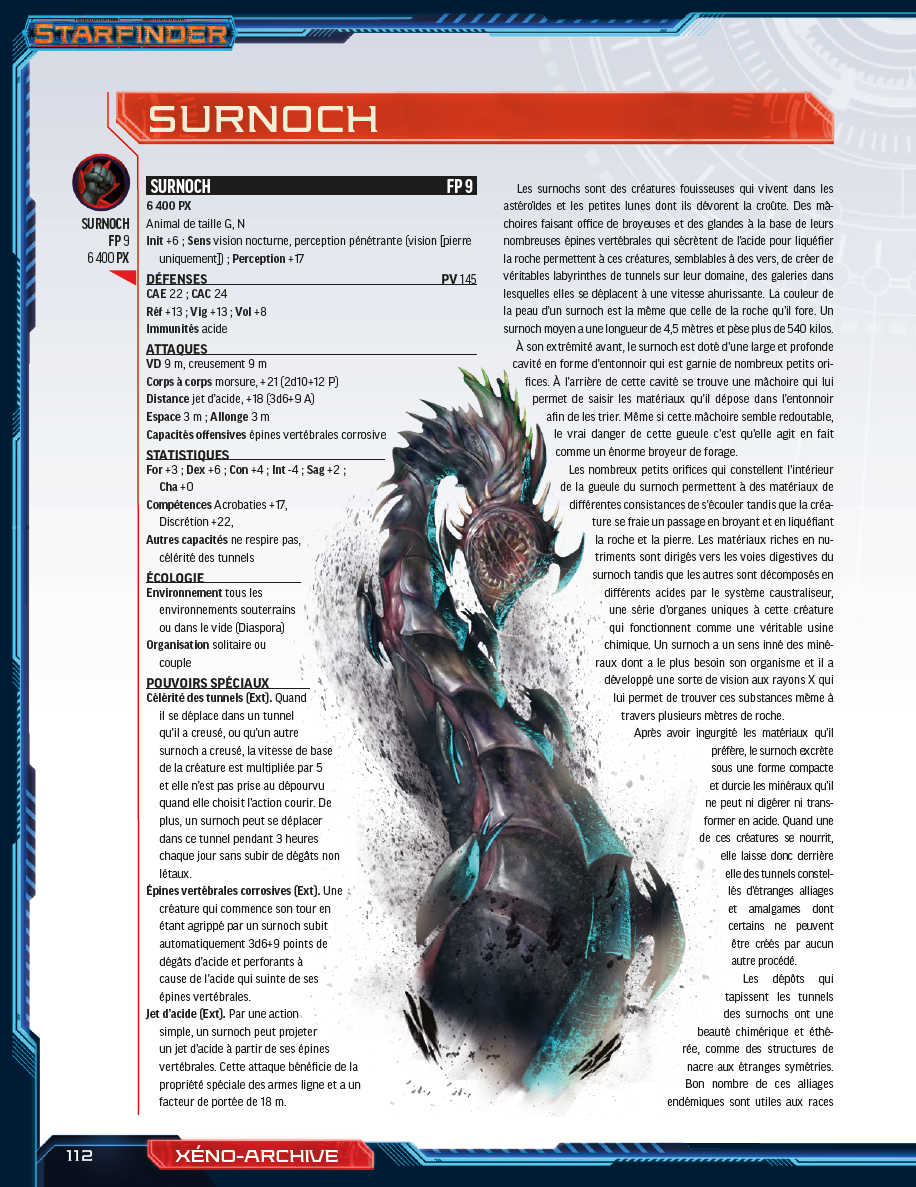 - Un solide système de création de PNJ pour permettre aux meneurs de jeu de créer des extraterrestres ou des créatures tout droit sortis de leur imagination.