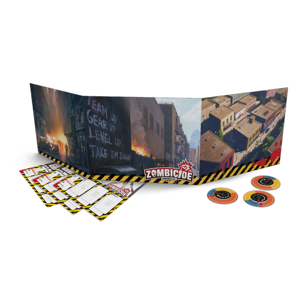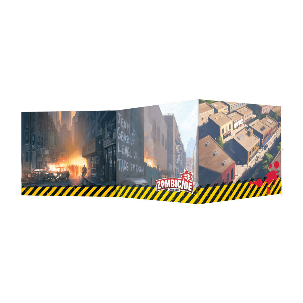 Le Kit du Meneur de Jeu contient un écran qui résume toutes les informations nécessaires pour faire vivre une aventure de dingue à tes survivants dans Zombicide : Chronicles, le jeu de rôle basé sur l’univers du célèbre jeu de société Zombicide.