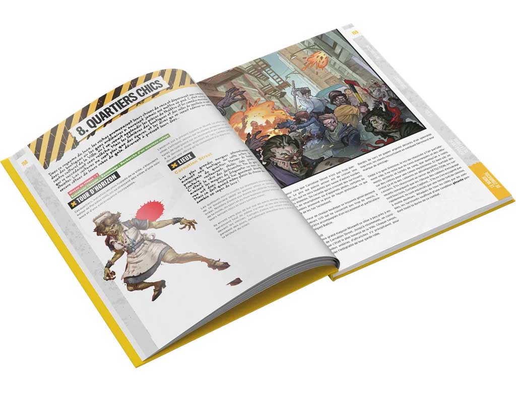 Ce livre détaille les règles et les différents types de missions qui te permettront de vivre votre propre Zombicide. Les mécaniques de jeu sont simples et fluides, l’immersion peut être enrichie par l’utilisation du matériel et des figurines du jeu de plateau Zombicide.